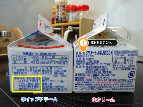 つまり、私が手に取った安いほうは「ホイップクリーム」。