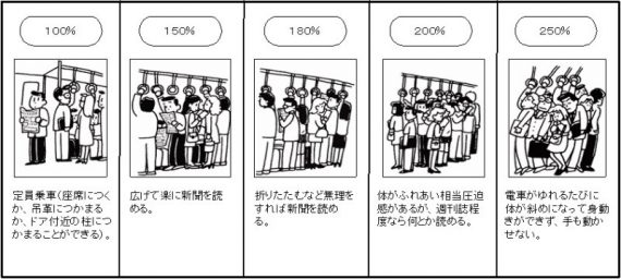 乗車率180%は無理をすれば新聞を読めるレベルです。
