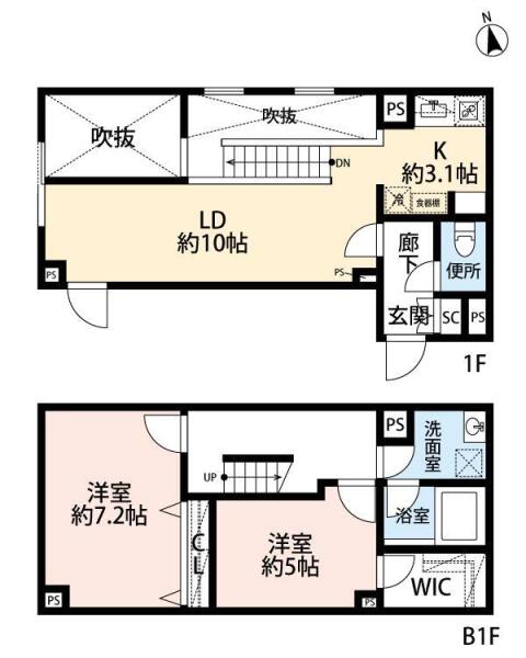 | 間取り | 2LDK (LDK10帖 , K3.1帖 , 洋室7.2帖、洋室5.0帖) | ||