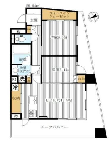 | 間取り | 2LDK LDK12.9帖 , 洋室6.0帖・5.1帖 | ||
