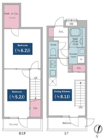 | 間取り | 2DK DK8.1帖 , 洋室5.2帖・6.2帖 | ||