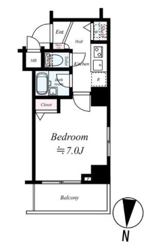 | 間取り | 1K K , 洋室7.0帖 | ||