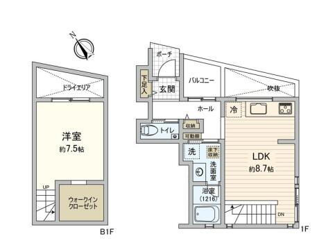 | 間取り | 1LDK LDK8.7帖 , 洋室7.5帖 | ||