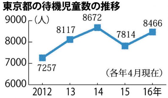 2016年4月時点の待機児童数は8644人とのことで、かなりの人数ですね。