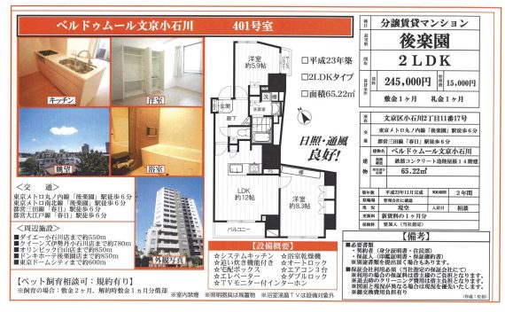 東京メトロ丸ノ内線・南北線「後楽園」駅&都営三田線・大江戸線「春日」駅徒歩6分!