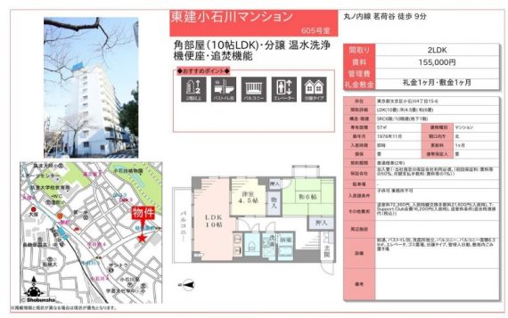 小石川1丁目の2LDKでこの価格、なかなか空きが出ません!希少♡