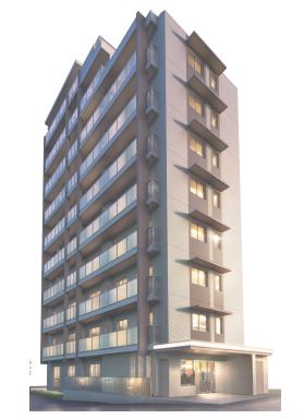 地上10階建て・1Kタイプがメインのシングル向けです。