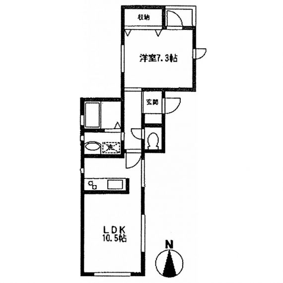 今回募集の201号室は46.58m²の1LDKタイプ。