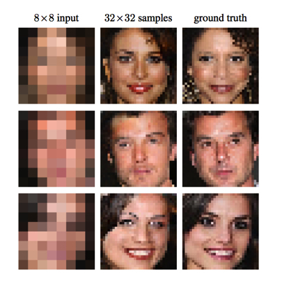 このシステムでは、「conditioning network」と「prior network」という2種類のニューラルネットワークを組み合わせて画像を解析し、8×8ピクセルという低画質画像から、32×32ピクセルの高解像度ヴァージョンを生成している。これによって、人間にはほとんど認識できない不鮮明な写真を、人や部屋をはっきり表す画像に変換できる。