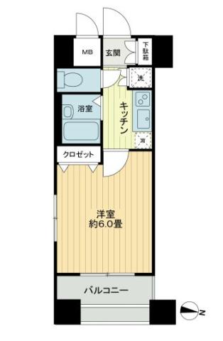 | 間取り | 1K K2帖 , 洋室約6.0帖 | ||