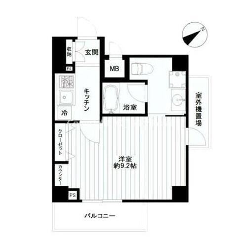 | 間取り | 1K (K , 洋室9.2帖) | ||