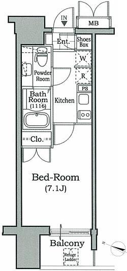 | 間取り | 1K (K , 洋室7.1帖) | ||