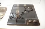 キッチンはガス2口コンロで自炊派の方にもおススメ♪