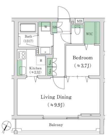 | 間取り | 1LDK LD9.9帖 , K2.3帖 , 洋室3.7帖 | ||