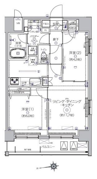 | 間取り | 2LDK (LDK11.7帖 , 洋室6.0帖、4.5帖) | ||