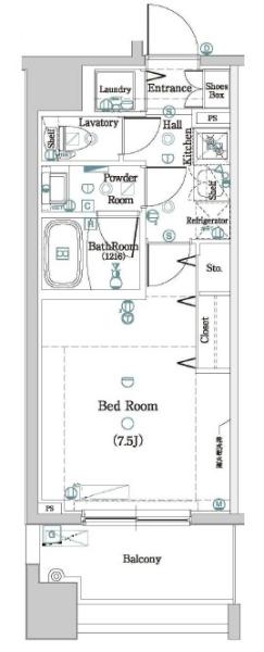 | 間取り | 1K (K , 洋室7.5帖) | ||