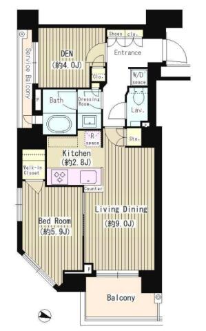 | 間取り | 2LDK LD9帖 , K2.8帖 , 洋室5.9帖・4.0帖 | ||