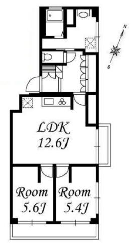 | 間取り | 2LDK LDK12.6帖 , 洋室5.6帖・5.4帖 | ||