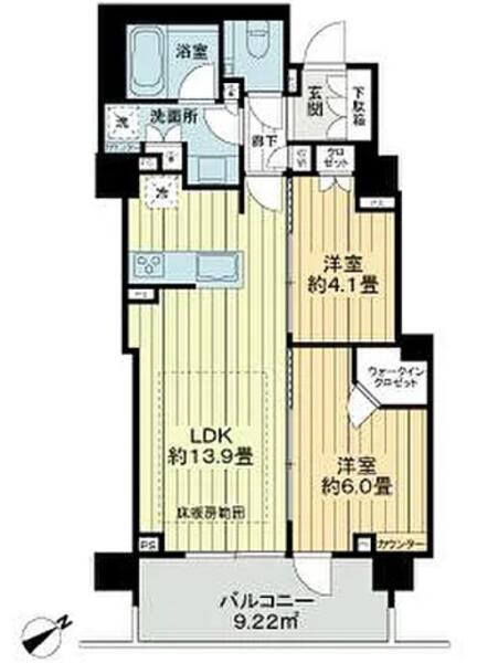 | 間取り | 2LDK (LDK13.9帖 , 洋室4.1帖 洋室6.0) | ||