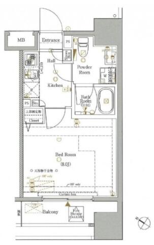 | 間取り | 1K K , 洋室8.0帖 | ||