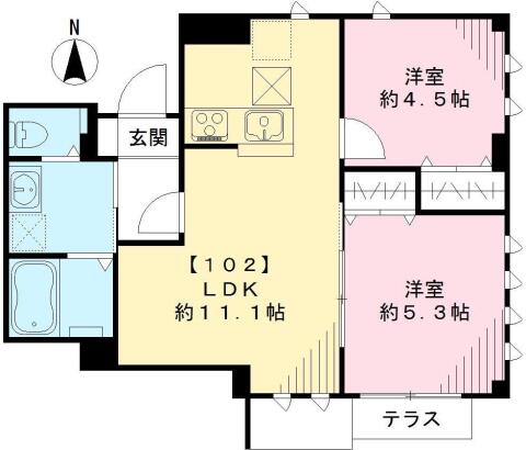 | 間取り | 2LDK LDK11.1帖 , 洋室5.3帖・4.5帖 | ||