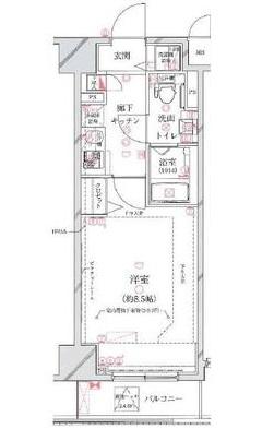 | 間取り | 1K (K , 洋室8.5帖) | ||