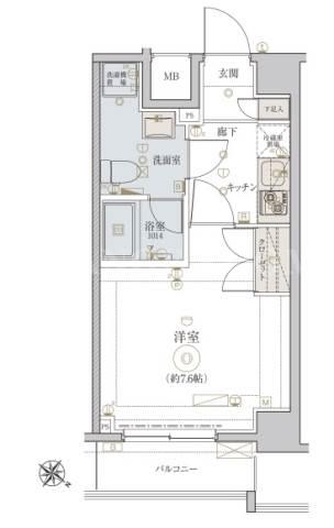 | 間取り | 1K (K , 洋室7.6帖) | ||