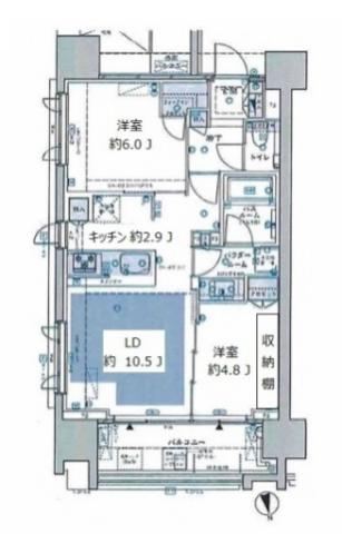 | 間取り | 2LDK LD10.5帖 , K2.9帖 , 洋室6.0帖・4.8帖 | ||