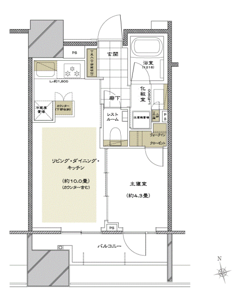 | 間取り | 1LDK (LDK10帖 , 洋室4.3帖) | ||