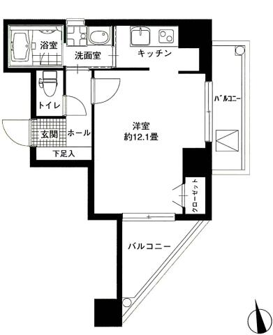 | 間取り | 1K K , 洋室12.1帖 | ||