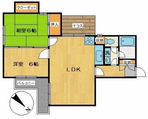 | 間取り | 2LDK LDK , 和室6帖、洋室6帖 | ||