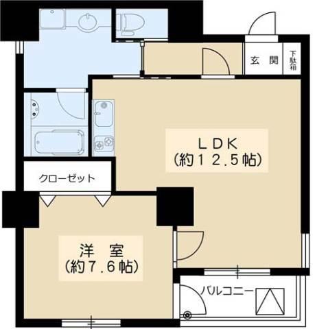 | 間取り | 1LDK (LD12.5帖 , 洋室7.6帖) | ||
