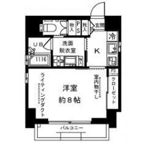 | 間取り | 1K K2帖 , 洋室8.0帖 | ||