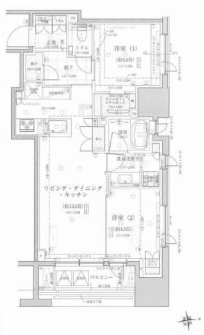 | 間取り | 2LDK (LDK13.5帖 , 洋室5.5帖、洋室4.5帖) | ||