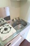 キッチンは1口ガスコンロ設置済み・ミニ冷蔵庫つきです。