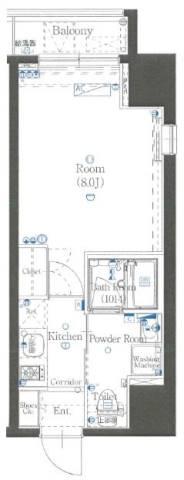 | 間取り | 1K (K2帖 , 洋室8.0帖) | ||