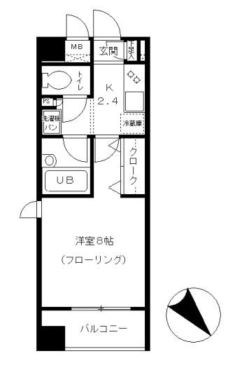| 間取り | 1K (K2.4帖 , 洋室8.0帖) | ||
