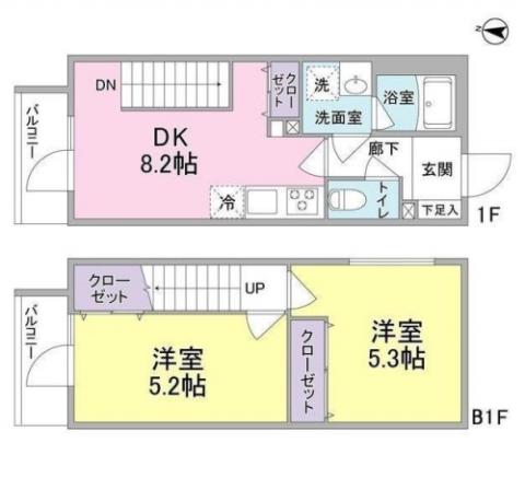 | 間取り | 2DK DK8.2帖 , 洋室5.2帖、洋室5.3帖 | ||