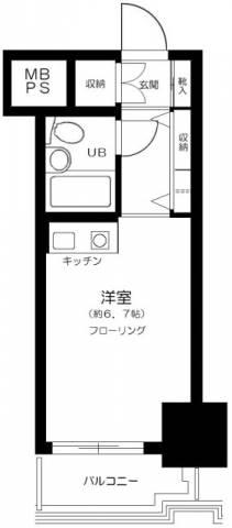 3点ユニットバスとミニキッチンのシンプルな間取り。