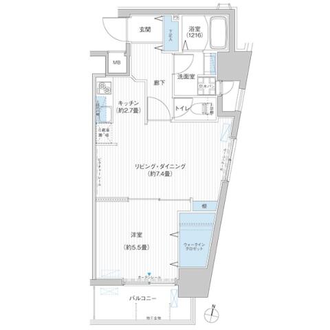 | 間取り | 1LDK LD7.6帖 , K2.7帖 , 洋室5.5帖 | ||