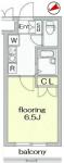 | 間取り | 1K (K2帖 , 洋室6.5帖) | ||