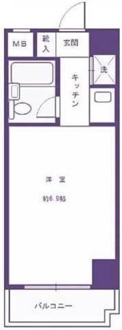| 間取り | 1K (K , 洋室6.9帖) | ||
