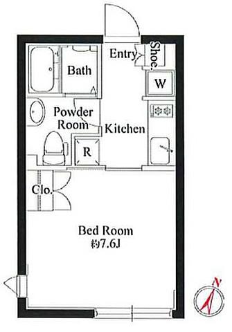 | 間取り | 1K (K , 洋室7.6帖) | ||