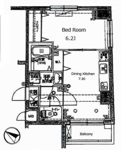 | 間取り | 1DK DK7.9帖 , 洋室6.2帖 | ||