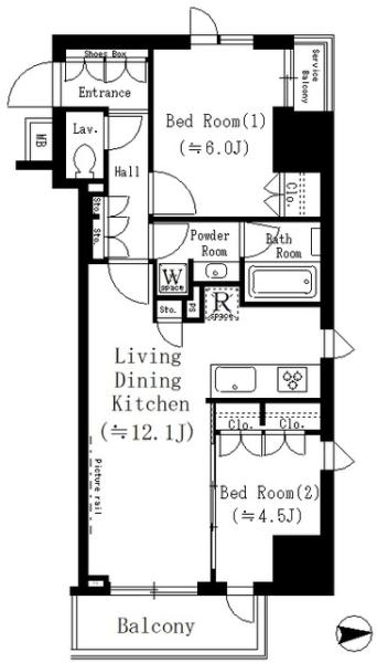 | 間取り | 2LDK (LDK12.1帖 , 洋室6.0帖・4.5帖) | ||