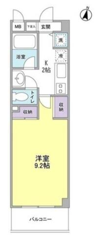 | 間取り | 1K K2帖 , 洋室9.2帖 | ||