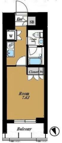 | 間取り | 1K K , 洋室7.6帖 | ||