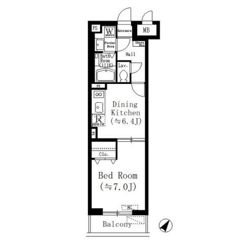 | 間取り | 1DK DK6.4帖 , 洋室7.0帖 | ||