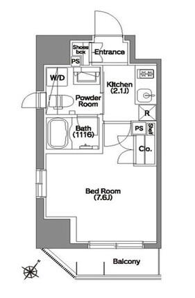 | 間取り | 1K (K2.1帖 , 洋室約7.6帖) | ||