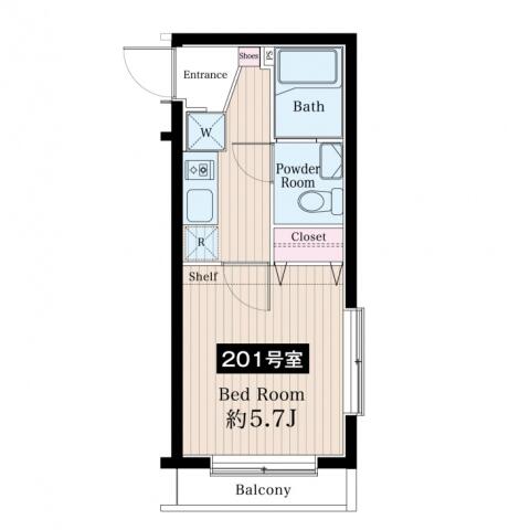 | 間取り | 1K K , 洋室5.7帖 | ||